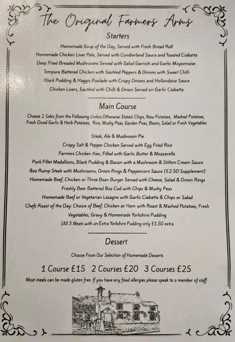 The menu at The Original Farmers Arms offers a relaxed and approachable array of dishes, perfectly suited for casual dining or a comforting meal after a busy day. Its blend of traditional English pub fare alongside some contemporary twists creates a welcoming atmosphere for both regulars and visitors alike.